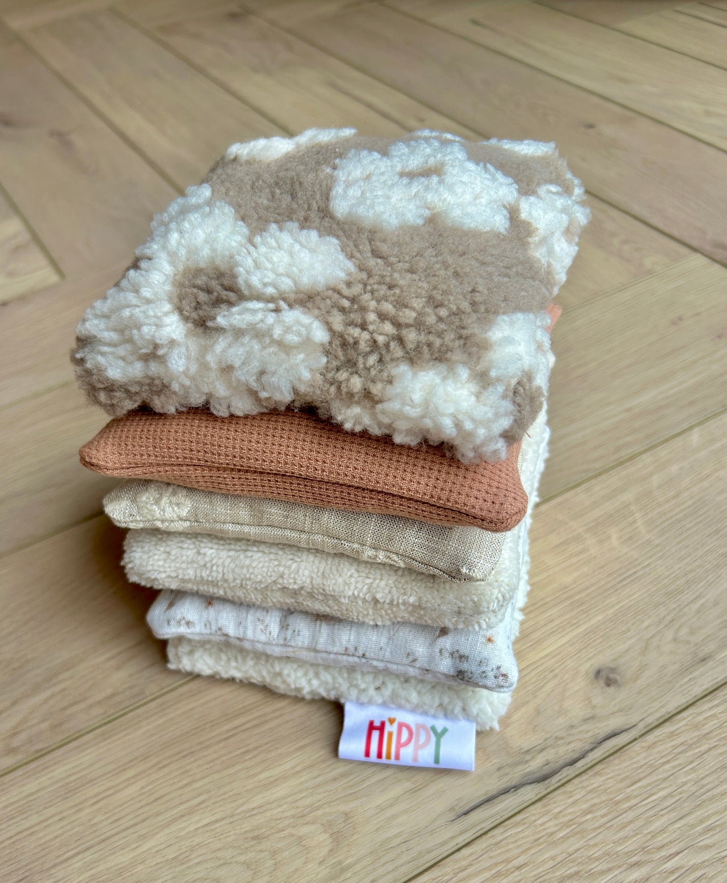 Laat je kind op een speelse manier de wereld van voelen, ontdekken en bewegen verkennen met deze set van 6 sensorische pittenzakjes. Elk zakje heeft een eigen stof, kleur en structuur, gevuld met ongeveer 130 gram biologische kersenpitten. Perfect voor nieuwsgierige handjes die graag voelen, gooien, stapelen of gewoon even tot rust komen.