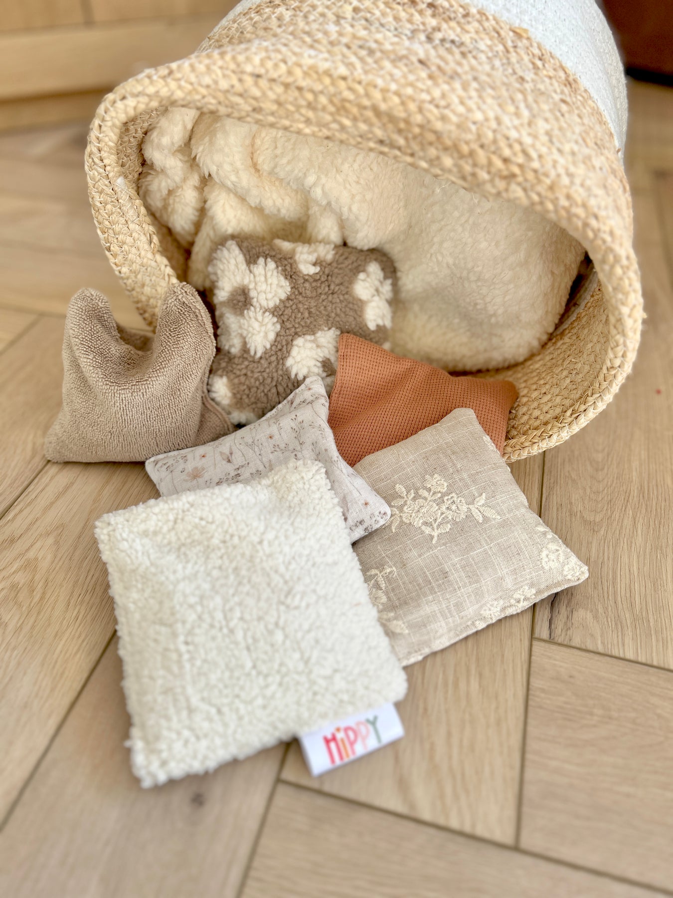 Sensorische Pittenzakjes Set (6 stuks) – Beige bloem